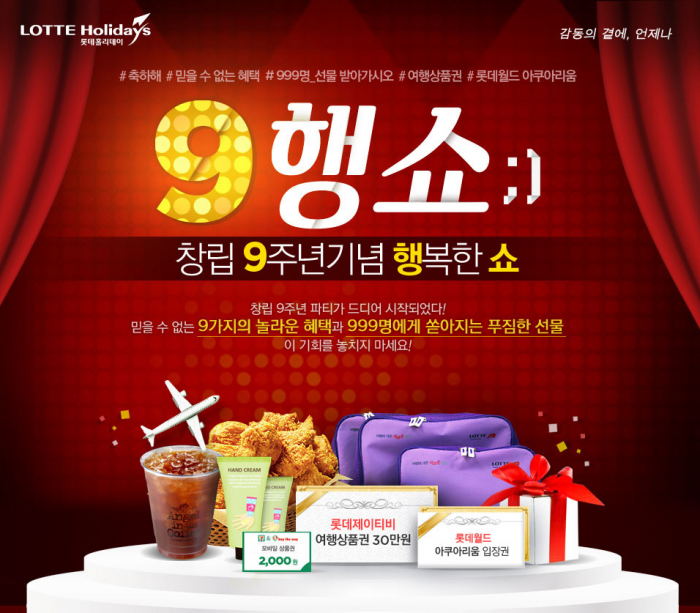 (서울=포커스뉴스) 롯데제이티비가 창립 9주년을 맞이해 5월 한 달 간 '9행쇼(창립 9주년 행복한 쇼)' 이벤트를 진행한다고 4일 밝혔다.