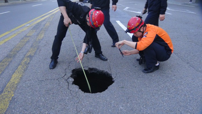 이 싱크홀로 왕복 6차선 도로 중 2개 차로가 5시간 동안 통제돼 주변 통행에 불편을 겪었다.