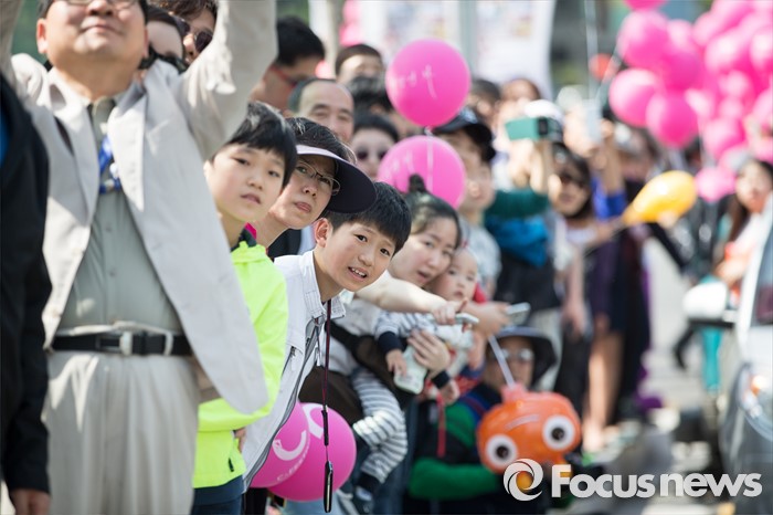 (서울=포커스뉴스) 어린이날을 맞아 5일 오후 서울 영동대로 일대에서 열린 '2016 C-페스티벌'에서 가족들과 함께 온 시민들이 C-퍼레이드 행사를 관람하고 있다.