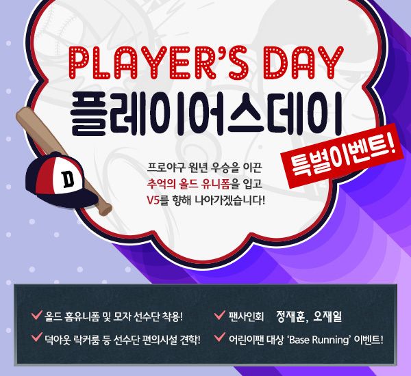 한편 선수단은 원년우승 추억이 깃든 올드 유니폼을 입고 경기에 나선다.프로야구 두산이 8일 잠실구장에서 열리는 롯데와의 경기에 '플레이어스 데이' 행사를 연다. 사진은 행사 포스터. <사진제공=두산 베어스>