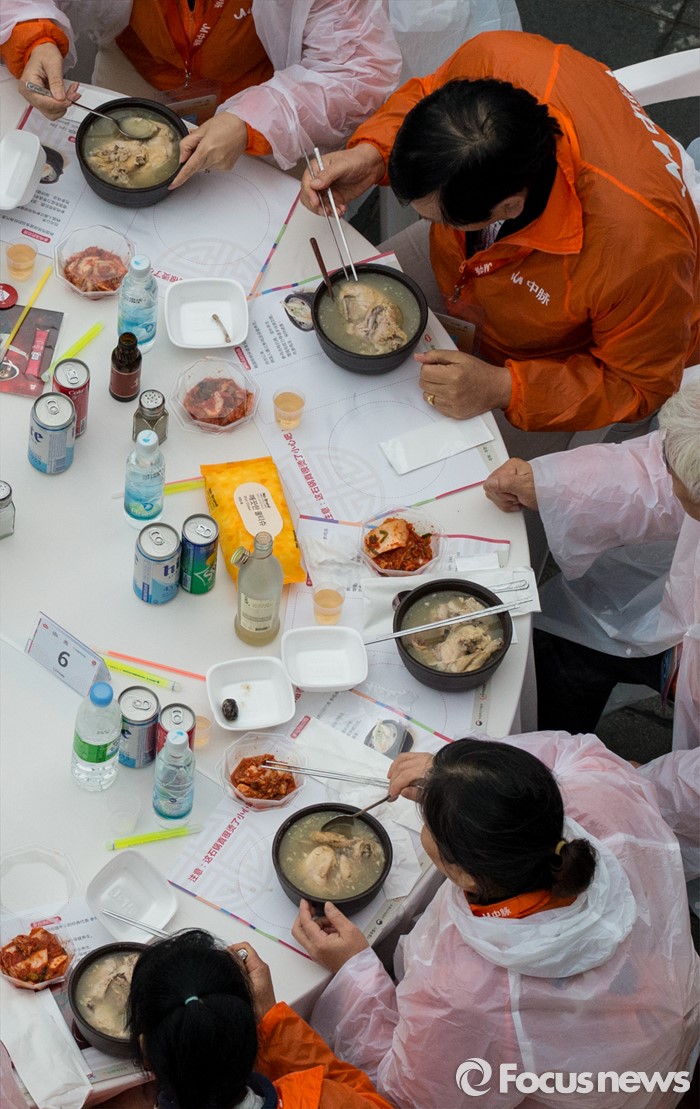 (서울=포커스뉴스) 6일 오후 서울 반포한강공원에서 중국 건강보조제품 회사 중마이그룹 직원들이 삼계탕 파티를 즐기고 있다. 이날 한강공원을 찾은 4천여명의 중마이그룹 직원들은 삼계탕 파티와 태양의 후예 OST 미니 콘서트 등을 즐겼다.