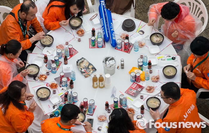 (서울=포커스뉴스) 6일 오후 서울 반포한강공원에서 중국 건강보조제품 회사 중마이그룹 직원들이 삼계탕 파티를 즐기고 있다. 이날 한강공원을 찾은 4천여명의 중마이그룹 직원들은 삼계탕 파티와 태양의 후예 OST 미니 콘서트 등을 즐겼다.