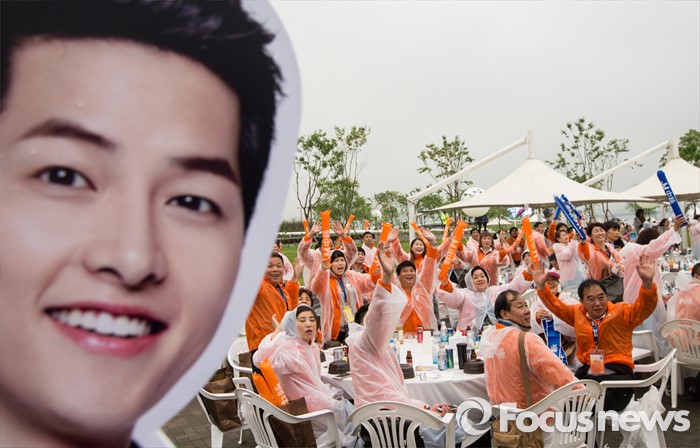 (서울=포커스뉴스) 6일 오후 서울 반포한강공원에서 중국 건강보조제품 회사 중마이그룹 직원들이 삼계탕 파티를 즐기고 있다. 이날 한강공원을 찾은 4천여명의 중마이그룹 직원들은 삼계탕 파티와 태양의 후예 OST 미니 콘서트 등을 즐겼다.