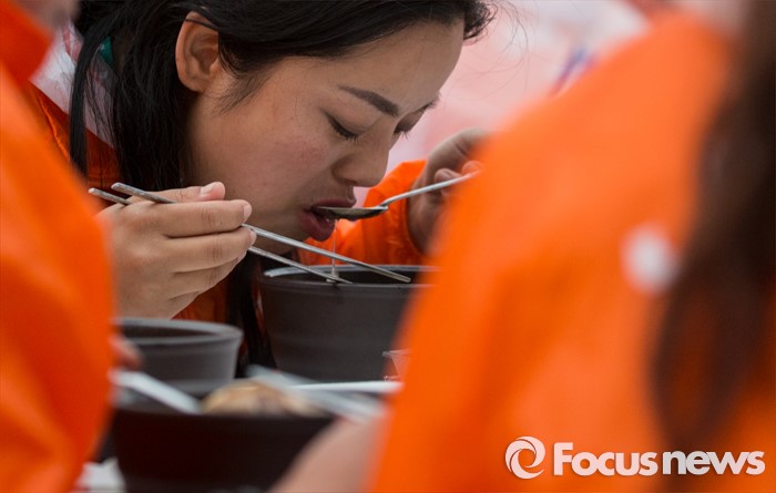 (서울=포커스뉴스) 6일 오후 서울 반포한강공원에서 중국 건강보조제품 회사 중마이그룹 직원들이 삼계탕 파티를 즐기고 있다. 이날 한강공원을 찾은 4천여명의 중마이그룹 직원들은 삼계탕 파티와 태양의 후예 OST 미니 콘서트 등을 즐겼다.