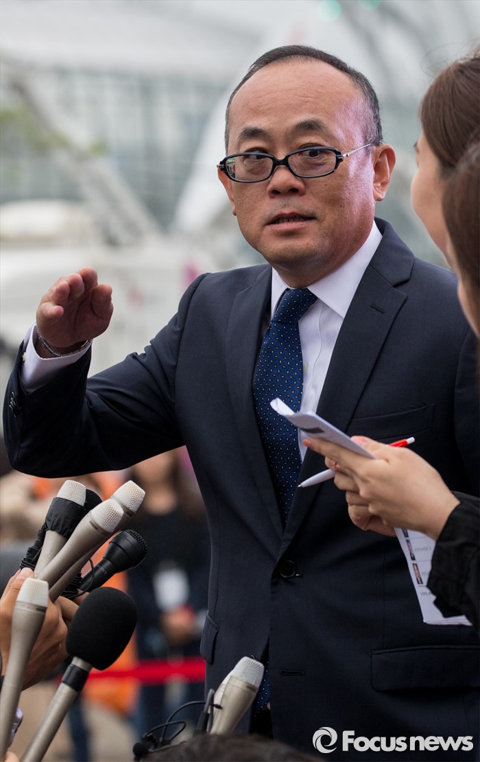 (서울=포커스뉴스) 6일 오후 서울 반포한강공원에서 열린 삼계탕 파티에 참석한 리다빙 중마이 그룹 총재가 취재진의 질문에 답하고 있다. 이날 한강공원을 찾은 4천여명의 중마이그룹 직원들은 삼계탕 파티와 태양의 후예 OST 미니 콘서트 등을 즐겼다.