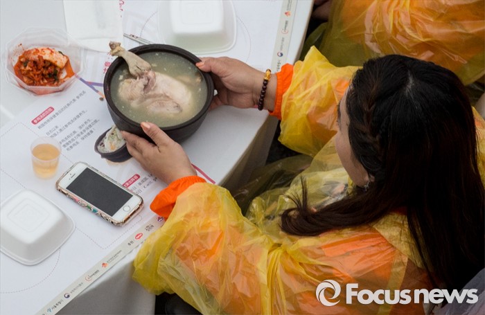 (서울=포커스뉴스) 6일 오후 서울 반포한강공원에서 중국 건강보조제품 회사 중마이그룹 직원들이 삼계탕 파티를 즐기고 있다. 이날 한강공원을 찾은 4천여명의 중마이그룹 직원들은 삼계탕 파티와 태양의 후예 OST 미니 콘서트 등을 즐겼다.