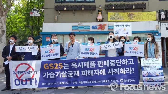 강찬호 가피모 회장은 "옥시에 대한 국민의 분노는 이윤추구를 위해 생명을 경시하고 공동체의 근간을 흔드는 범죄에 대한 분노이기도 하다"며 "편의점 업계 1위인 GS25와 GS리테일도 하루속히 옥시 제품 판매를 중단하라"고 요구했다.