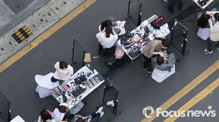 (서울=포커스뉴스) 7일 오후 서울 서대문구 신촌 차없는 거리에서 열린 제1회 신촌 뷰티 페스티벌 '뷰티체어 101' 행사 참가자들이 메이크업과 머리 손질을 받고 있다.