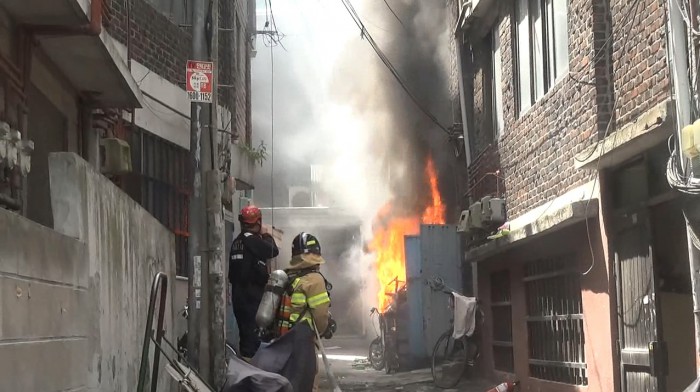 (서울=포커스뉴스) 7일 오후 1시27분쯤 서울 영등포구 신길동 한 주택가 쓰레기더미에서 불이 나 10분 만에 꺼졌다.