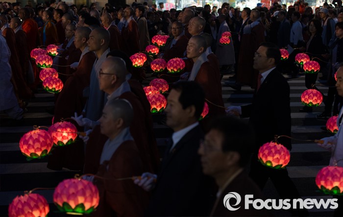 (서울=포커스뉴스) 부처님 오신날을 일주일 앞둔 7일 오후 서울 종로구 흥인지문부터 시작해 조계사까지 이어지는 화려한 연등 행렬이 펼쳐지고 있다.