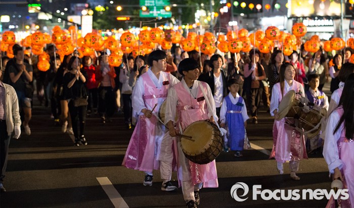 (서울=포커스뉴스) 부처님 오신날을 일주일 앞둔 7일 오후 서울 종로구 흥인지문부터 시작해 조계사까지 이어지는 화려한 연등 행렬이 펼쳐지고 있다.