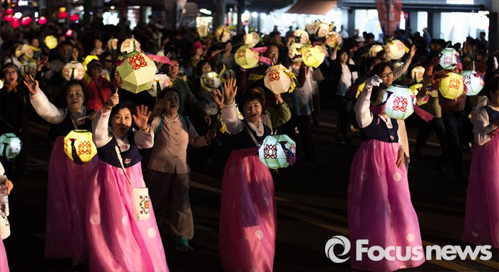 (서울=포커스뉴스) 부처님 오신날을 일주일 앞둔 7일 오후 서울 종로구 흥인지문부터 시작해 조계사까지 이어지는 화려한 연등 행렬이 펼쳐지고 있다.