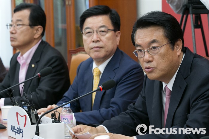 (서울=포커스뉴스) 정진석(오른쪽) 새누리당 원내대표가 8일 오후 서울 여의도 국회에서 열린 가습기살균제 피해 대책 당정협의에 참석해, 모두발언하고 있다.