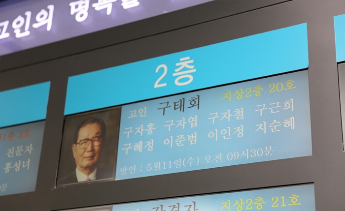 (서울=포커스뉴스) 마지막 LG 창업 1세대, 구태회 LS전선 명예회장이 7일 오전 3시 30분께 노환으로 별세했다. 사진은 서울 송파구 서울아산병원에 마련된 고 구태회 명예회장의 빈소. <사진제공=LS그룹>