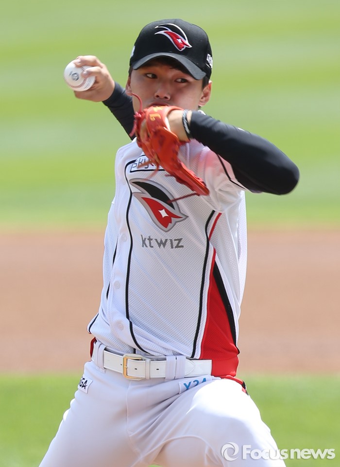 (서울=포커스뉴스) 8일 수원 kt위즈파크에서 열린 2016프로야구 한화-kt 경기에서 1회초 kt 선발투수 주권이 투구하고 있다.