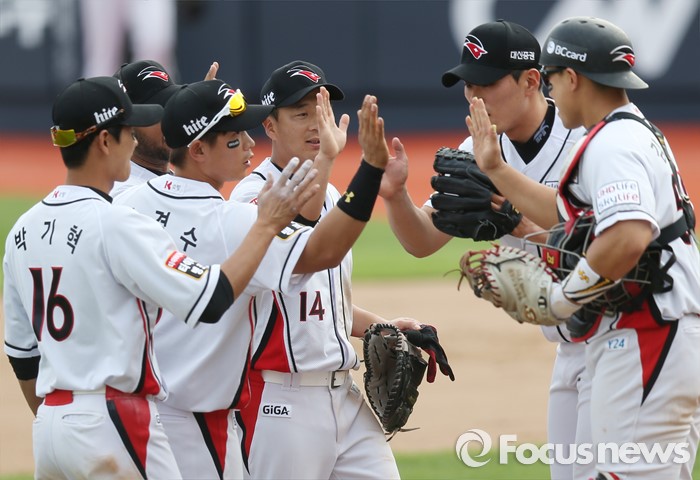 NC는 LG를 11-5로 승리하며 8연승을 달렸다. 나성범-테임즈-이호준으로 이어지는 중심타선이 6안타 3타점 6득점을 합작했다. 박석민이 2안타 5타점으로 힘을 보탰다.(서울=포커스뉴스) 8일 수원 kt위즈파크에서 열린 2016프로야구 한화-kt 경기에서 한화와의 3연전을 모두 승리로 장식한 kt 선수들이 마운드에 모여 하이파이브를 하고 있다.2016.05.08 우정식 기자 (서울=포커스뉴스) 8일 수원 kt위즈파크에서 열린 2016프로야구 한화-kt 경기에서 2회말 한화 포수 조인성이 박종철 주심의 연속 보크 선언에 열받은 로저스를 진정시키고 있다. 2016.05.08 우정식 기자