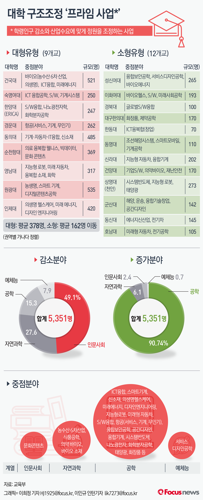 프라임사업은 학령인구 감소와 산업수요에 맞게 정원을 조정하는 사업으로 총 5,351명 규모의 정원 이동이 이뤄진다. '산업인력 맞춤 인재 양성'이라는 사업 취지에 따라 교육과정 개편도 진행될 예정이다.