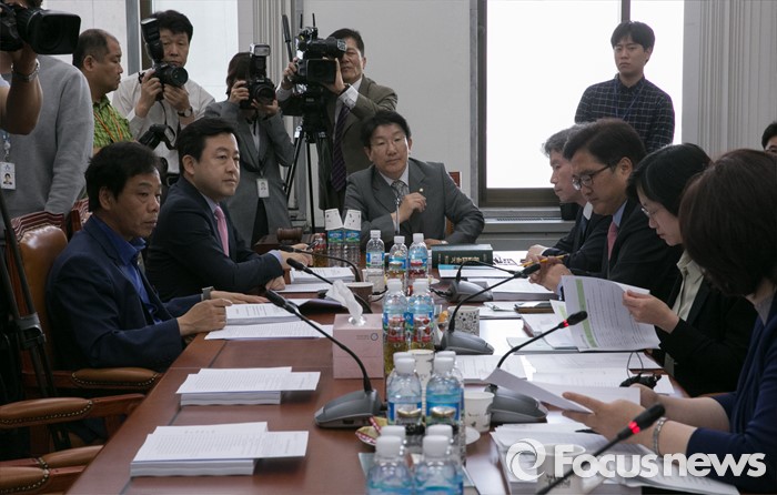(서울=포커스뉴스) 9일 오전 서울 여의도 국회에서 권성동 소위원장 주재로 열린 환경노동위원회 법안심사소위원회에 참석한 여야 의원들이 법안 심사를 하고 있다. 이날 환노위 법안소위는 가습기살균제의 흡입독성 화학물질에 의한 피해구제에 관한 법률안 및 가습기살균제피해구제법률안 등을 심사할 예정이다.