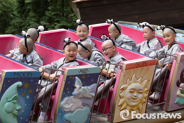 (용인=포커스뉴스) 9일 오전 경기도 용인시 에버랜드에서 동자승들이 놀이기구를 타며 즐거운 시간을 보내고 있다.