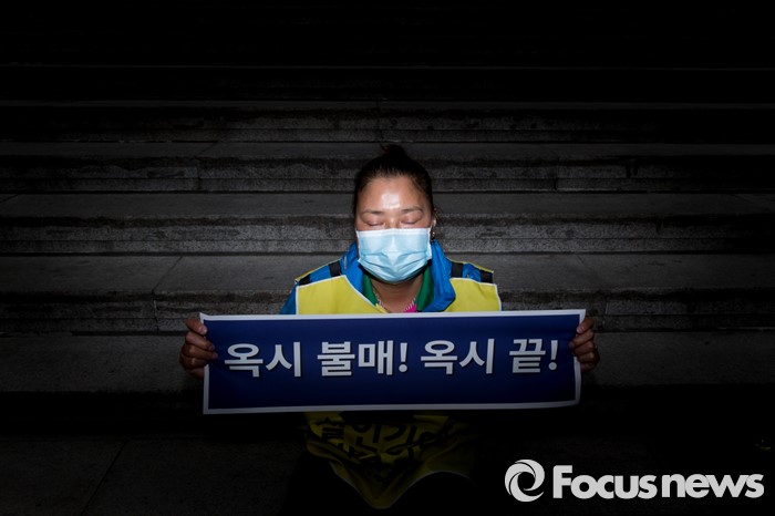 (서울=포커스뉴스) 9일 오후 서울 종로구 세종문화회관 앞 계단에서 옥시 가습기 살균 피해자 안은주씨가 옥시 불매 집중 행동 돌입선언 기자회견을 하고 있다.