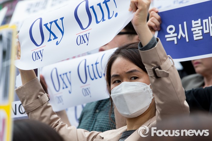 (서울=포커스뉴스) 9일 오후 서울 종로구 세종문화회관 앞 계단에서 환경운동연합 및 시민사회단체들이 옥시 불매 집중 행동 돌입선언 기자회견을 하고 있다.