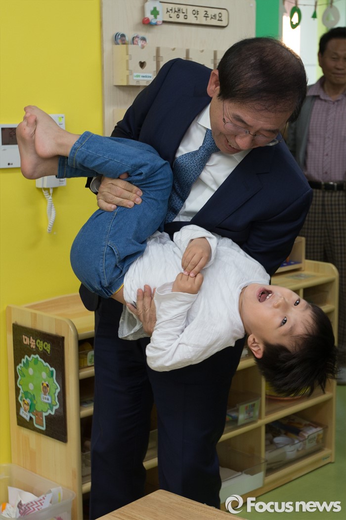 (서울=포커스뉴스) 박원순 서울시장이 9일 오후 서울 성동구 송정햇살어린이집에서 열린 서울시 1000번째 국공립어린이집 개원식을 마친 뒤 어린이들과 시간을 보내고 있다.
