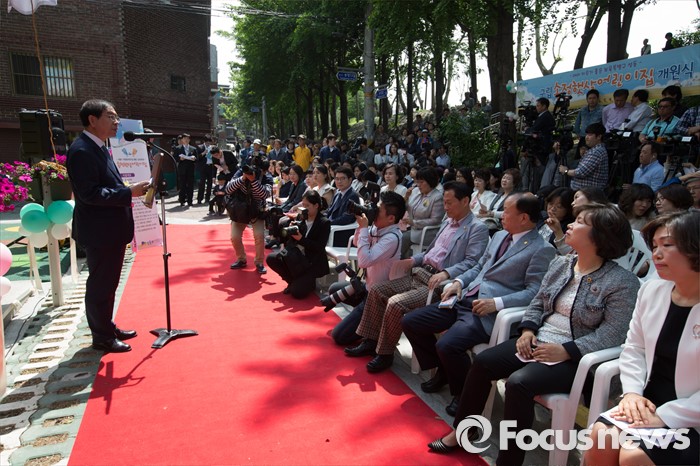 (서울=포커스뉴스) 9일 오후 서울 성동구 송정햇살어린이집에서 열린 서울시 1000번째 국공립어린이집 개원식에서 박원순 서울시장이 축사를 하고 있다.