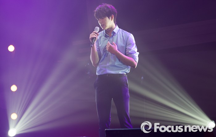 (서울=포커스뉴스) 9일 오후 서울 광진구 예스24라이브홀에서 열린 첫 솔로 미니앨범 발매 기념 프레스 쇼케이스에서 인피니트의 가수 남우현이멋진 무대를 선보이고 있다.