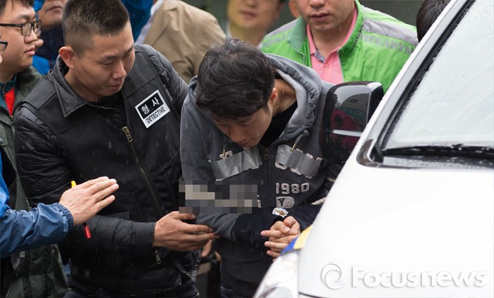 (인천=포커스뉴스) 안산 대부도 토막살인의 용의자 조성호가 10일 오전 인천 연수구 연수동의 주거지에서 현장검증을 위해 범행현장으로 이동하고 있다.
