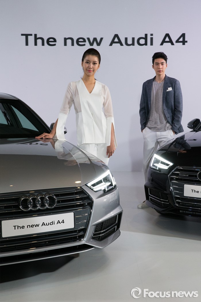 (서울=포커스뉴스) 10일 오전 서울 중구 반얀트리 클럽 앤 스파에서 모델들이 준중형 세단 '뉴 아우디 A4'를 선보이고 있다. '뉴 아우디 A4'는 기존 모델보다 무게가 최대 100kg까지 감량, 최고 출력 252마력, 최대 토크 38.0kg·m, 연비는 복합연비 기준 11.6km이다.