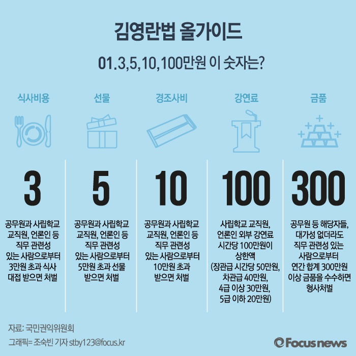 | △ [그래픽] 김영란법 올가이드 01. 3,5,10,100,300만원 이 숫자는? |