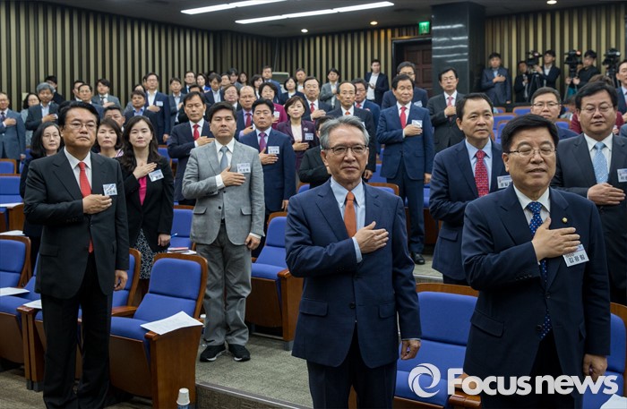 | △ 국민의례하는 새누리당 초선의원들 |