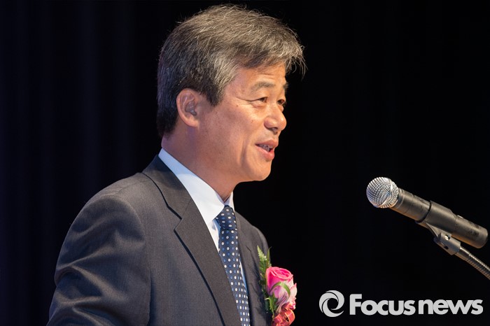 (과천=포커스뉴스) 10일 오전 경기도 과천시민회관에서 열린 '제5회 유권자의 날 기념식'에서 이인복 중앙선거관리위원장이 기념사를 하고 있다.