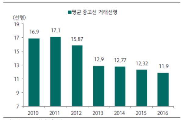 박 애널리스트는 "선박 수요 전망에는 선박의 가치에 중대한 영향을 미치고 있는 IMO 규제가 반영돼야 한다"고 재차 강조하고 "중소 조선소들을 중심으로 중소형 선박의 교체 수요를 이끌어내게 되면 한국 조선업의 선박 수주 점유율은 올라갈 것"이라고 전망했다.평균 중고선 거래 선령.<자료제공=하나금융투자>평균 중고선 해체 선령.<자료제공=하나금융투자>한국 선박 인도량.<자료제공=하나금융투자>