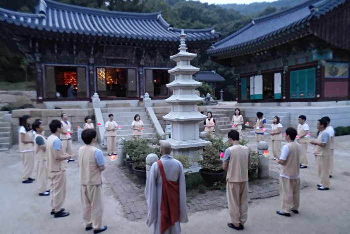 최종환 조계종사회복지재단 사무국장은 "이번 행사가 대한민국의 저출산 극복에 도움이 됐으면 좋겠다"고 말했다.지난해 진행된 '만남 템플스테이'에서 미혼남녀들이 탑돌이를 하고 있다.<사진제공=듀오>