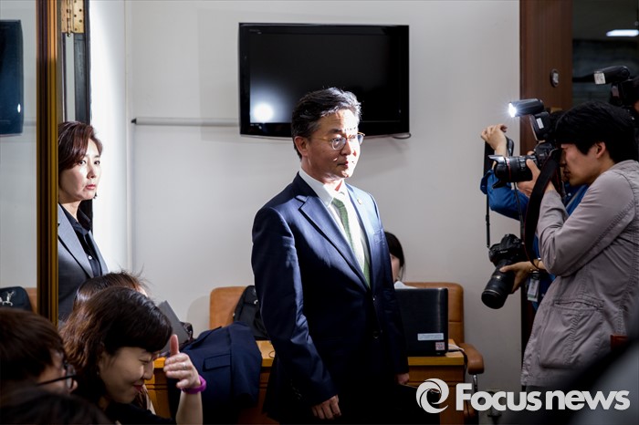 (서울=포커스뉴스) 나경원(왼쪽) 국회 외교통일위원장과 홍용표 통일부 장관이 10일 오후 서울 여의도 국회에서 열린 외교통일위원회 간담회에 참석하기 위해 회의실로 들어서고 있다.