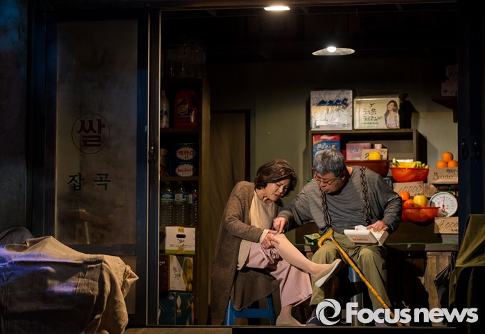 (서울=포커스뉴스) 10일 오후 서울 종로구 동숭아트센터에서 열린 연극 '장수상회' 프레스콜에 참석한 배우 백일섭, 김지숙이 극의 주요장면을 시연하고 있다.