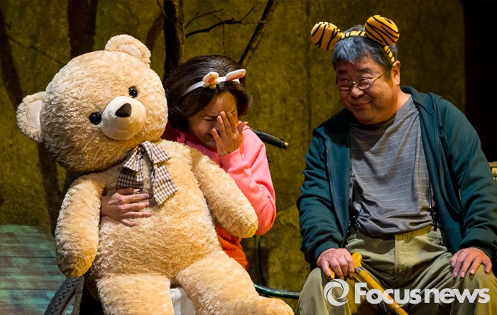 (서울=포커스뉴스) 10일 오후 서울 종로구 동숭아트센터에서 열린 연극 '장수상회' 프레스콜에 참석한 배우 백일섭, 김지숙이 극의 주요장면을 시연하고 있다.