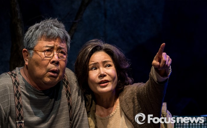 (서울=포커스뉴스) 10일 오후 서울 종로구 동숭아트센터에서 열린 연극 '장수상회' 프레스콜에 참석한 배우 백일섭, 김지숙이 극의 주요장면을 시연하고 있다.