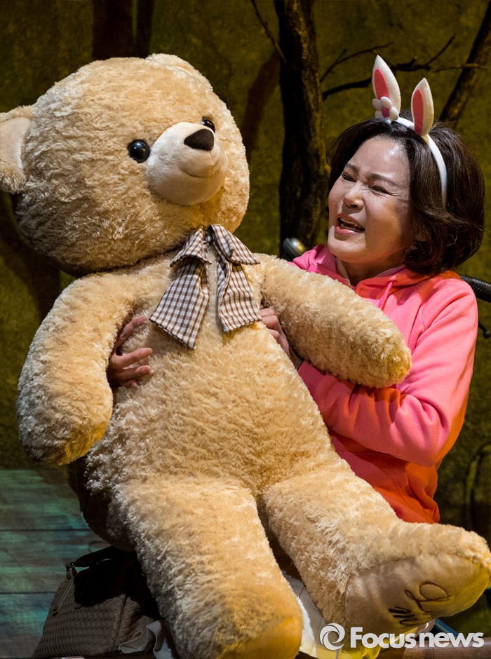 (서울=포커스뉴스) 10일 오후 서울 종로구 동숭아트센터에서 열린 연극 '장수상회' 프레스콜에 참석한 배우 김지숙이 극의 주요장면을 시연하고 있다.