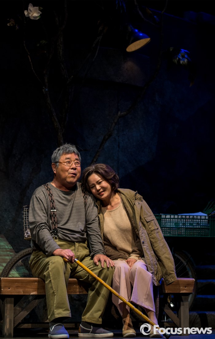 (서울=포커스뉴스) 10일 오후 서울 종로구 동숭아트센터에서 열린 연극 '장수상회' 프레스콜에 참석한 배우 백일섭, 김지숙이 극의 주요장면을 시연하고 있다.