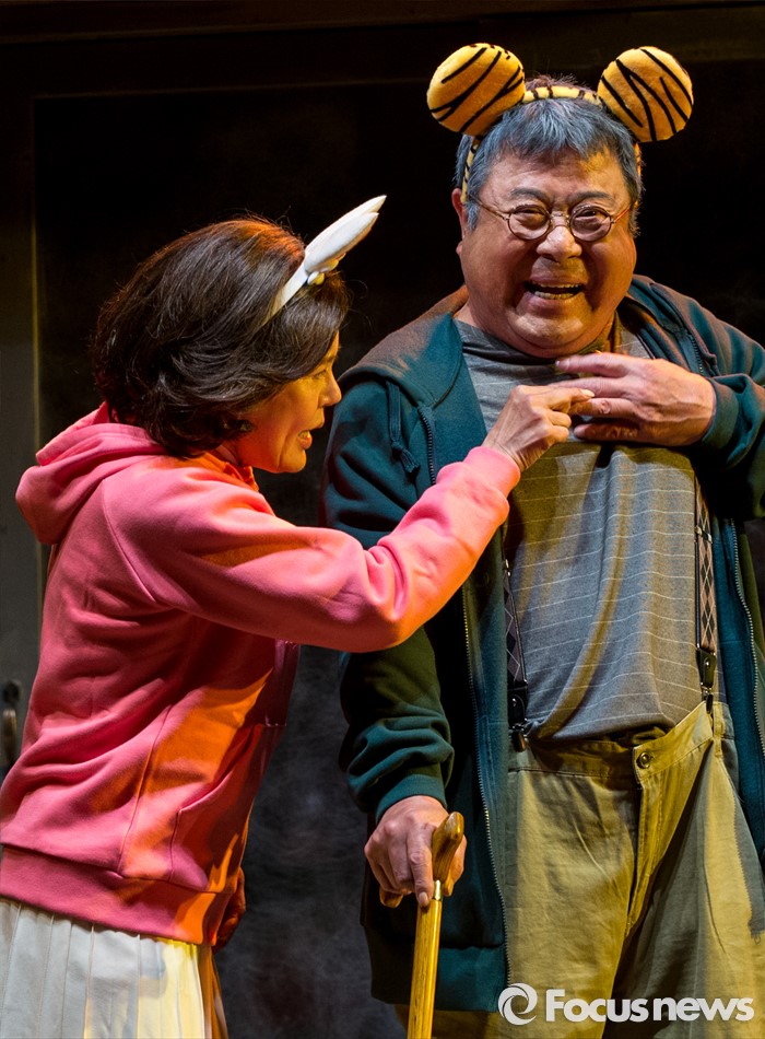 (서울=포커스뉴스) 10일 오후 서울 종로구 동숭아트센터에서 열린 연극 '장수상회' 프레스콜에 참석한 배우 백일섭, 김지숙이 극의 주요장면을 시연하고 있다.