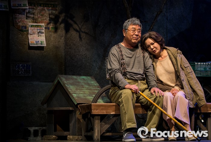 (서울=포커스뉴스) 10일 오후 서울 종로구 동숭아트센터에서 열린 연극 '장수상회' 프레스콜에 참석한 배우 백일섭, 김지숙이 극의 주요장면을 시연하고 있다.