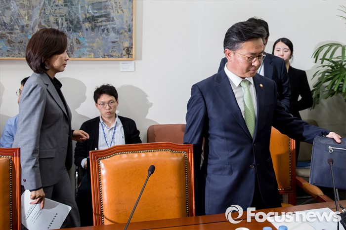 (서울=포커스뉴스) 나경원(왼쪽) 국회 외교통일위원장과 홍용표 통일부 장관이 10일 오후 서울 여의도 국회에서 열린 외교통일위원회 간담회에 참석하기 위해 회의실로 들어서고 있다.