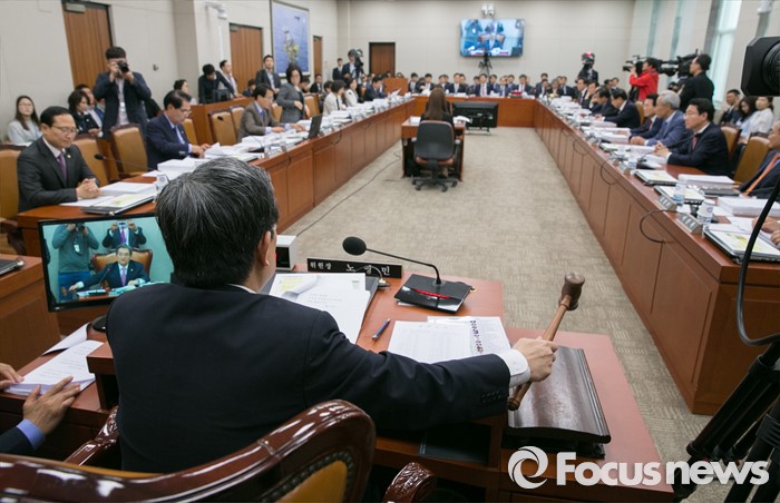(서울=포커스뉴스) 10일 오후 서울 여의도 국회에서 열린 산업통상자원위원회 전체회의에 참석한 노영민 위원장이 안건 의결을 하고 있다.
