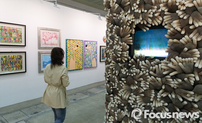 (서울=포커스뉴스) 10일 오후 서울 강남구 코엑스에서 열린 2016 서울오픈아트페어에 작품들이 전시되어 있다. 올해 열한 번 째를 맞는 서울오픈아트페어는 국내 상반기 최대 아트마켓으로 120여개의 국내외 갤러리들이 참여하고 1000여 명의 작가, 5000여 점의 회화, 조각, 사진, 설치, 미디어 아트 등의 작품이 전시될 예정이다.