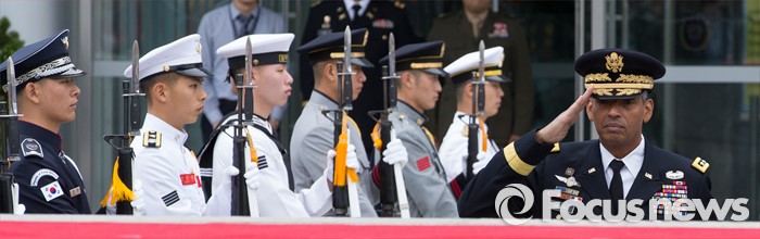 (서울=포커스뉴스) 10일 오후 서울 용산구 합동참모본부 대연병장에서 열린 환영 의장행사에서 빈센트 브룩스 신임 한·미연합사령관 겸 주한미군사령관이 의장대 사열을 하고 있다.