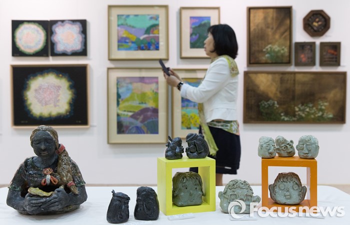(서울=포커스뉴스) 10일 오후 서울 강남구 코엑스에서 열린 2016 서울오픈아트페어에 작품들이 전시되어 있다. 올해 열한 번 째를 맞는 서울오픈아트페어는 국내 상반기 최대 아트마켓으로 120여개의 국내외 갤러리들이 참여하고 1000여 명의 작가, 5000여 점의 회화, 조각, 사진, 설치, 미디어 아트 등의 작품이 전시될 예정이다.