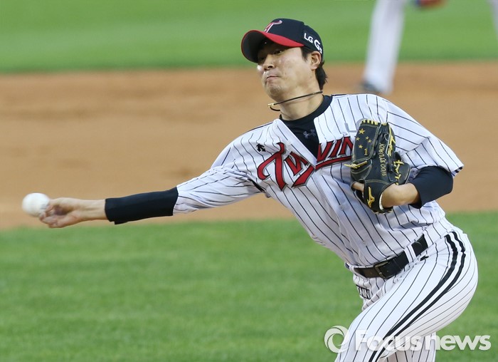 (서울=포커스뉴스) 10일 서울 잠실구장에서 열린 2016 프로야구 삼성-LG 경기에서 1회초 LG 선발투수 우규민이 투구하고 있다.