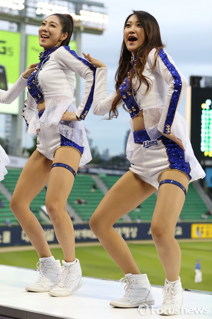 (서울=포커스뉴스) 10일 서울 잠실구장에서 열린 2016 프로야구 삼성-LG 경기에서 삼성 치어리더가 승리를 부르는 손짓으로 관중들의 응원을 유도하고 있다.